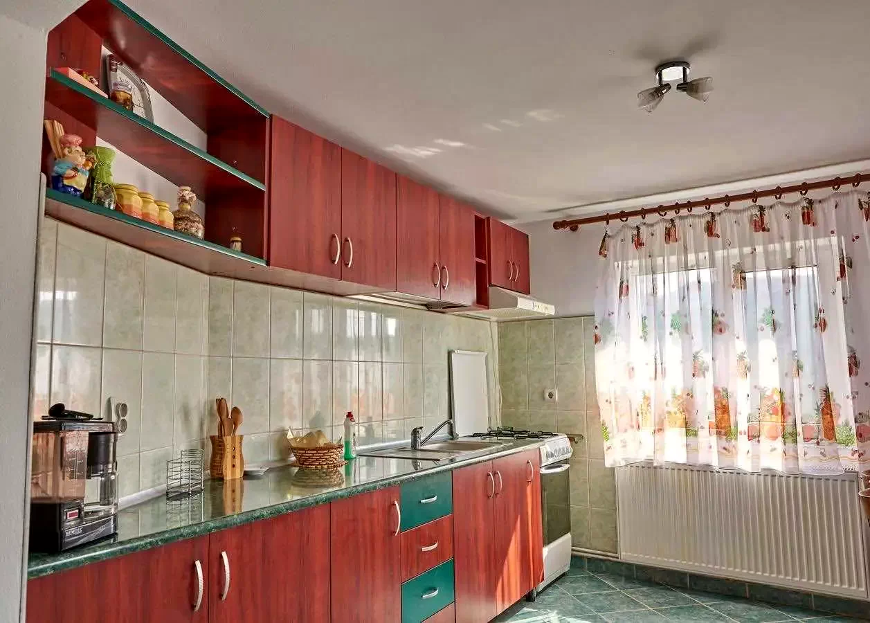 - Dispune de bucătărie complet utilata, sala de servit masa cu baie de serviciu, canapea extensibila, tv si home cinema.