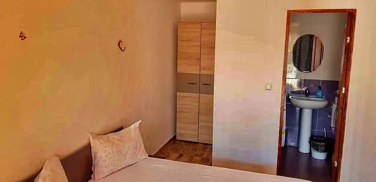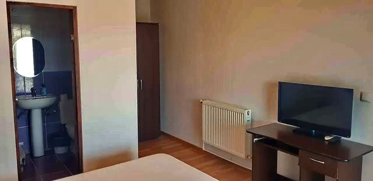 - Camere duble au fiecare baie proprie, terasa proprie unde puteti servi masa, frigider, tv led 80 cm, aer conditionat.