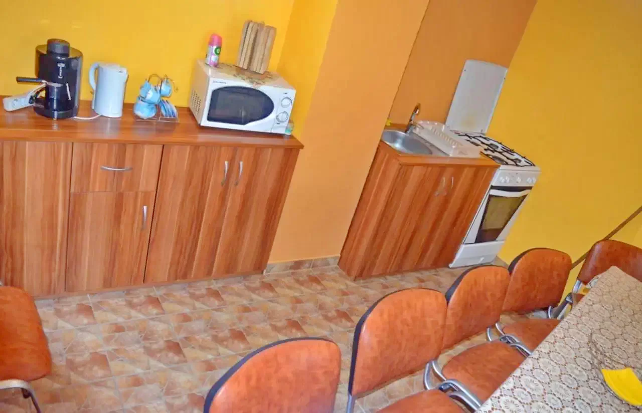 • Oaspeții au la dispoziție o bucătărie complet utilată, cu frigider, cuptor cu microunde și aragaz.