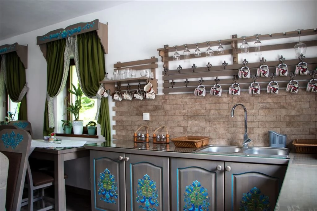 Își răsfață oaspeții cu o bucătărie utilată, o sufragerie elegantă, mâncăruri delicioase și capodopere ale bucătăriei tradiționale.