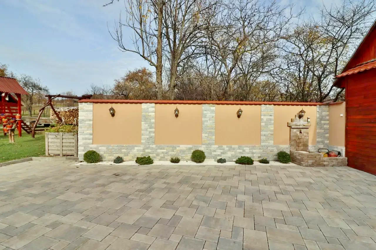 - Curtea frumos îngrijită oferă foișor, cuptor, grătar, loc pentru gătit în ceaun, loc de joacă pentru copii, leagăn, trambulină și parcare privată gratuită pentru 5 mașini.
