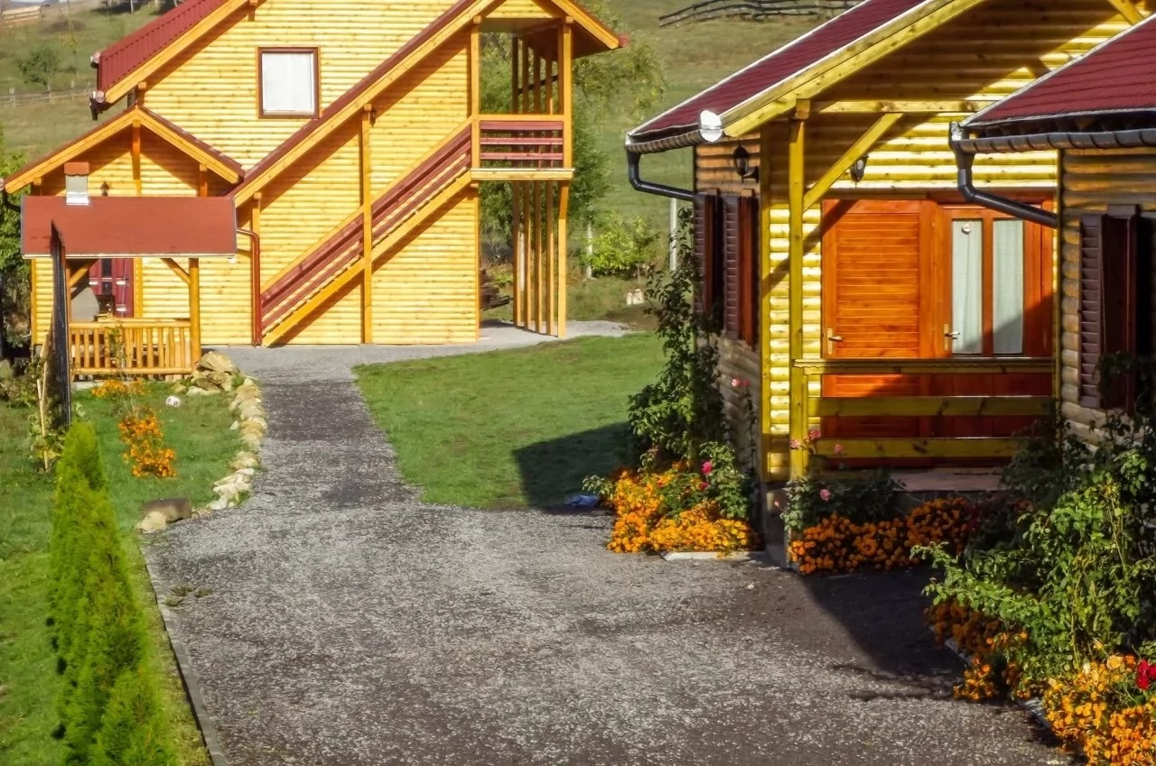 - Cazarea este situată pe un teren spațios, oferind o atmosferă calmă pentru oaspeții care sosesc pe tot parcursul anului.