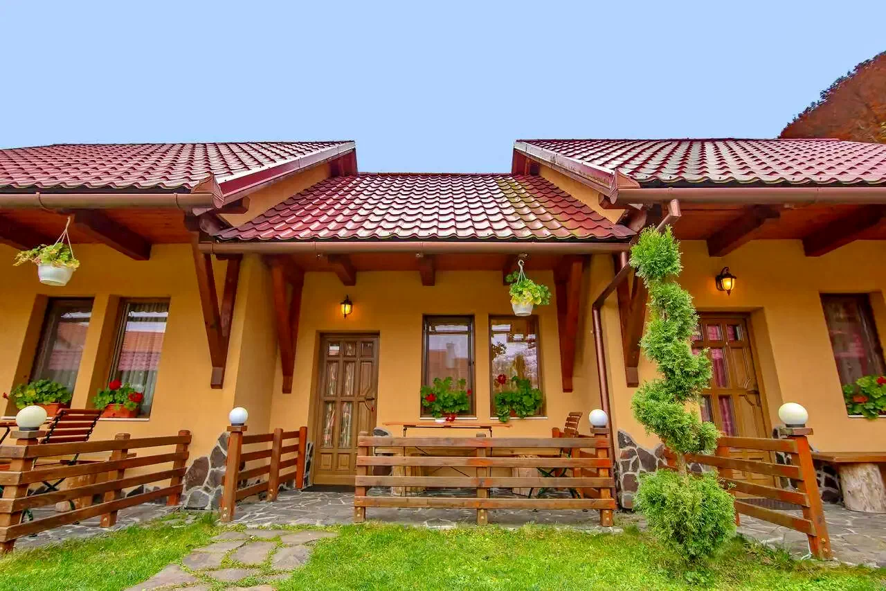 - Cabana este situată la 20 m de drumul principal si se compune din 5 cabane separate construite laolalta (fiecare cu intrare proprie).