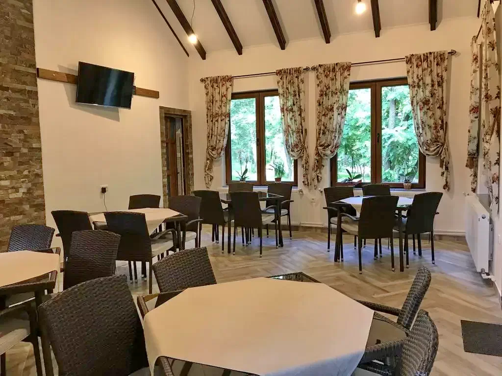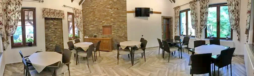 - În restaurantul său rustic elegant, oferă mâncăruri somptuoase gătite de casă (mic dejun, prânz, cină) la cerere. Aici pot servi masa 15-25 persoane.