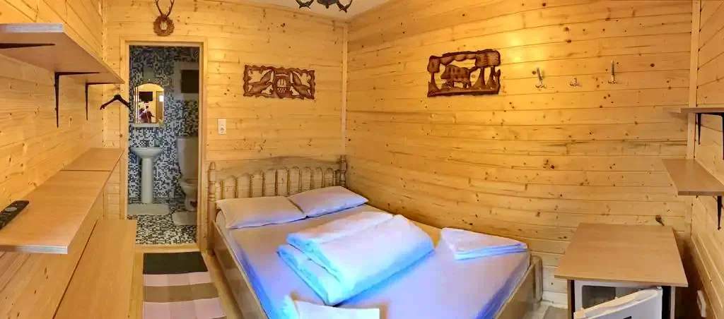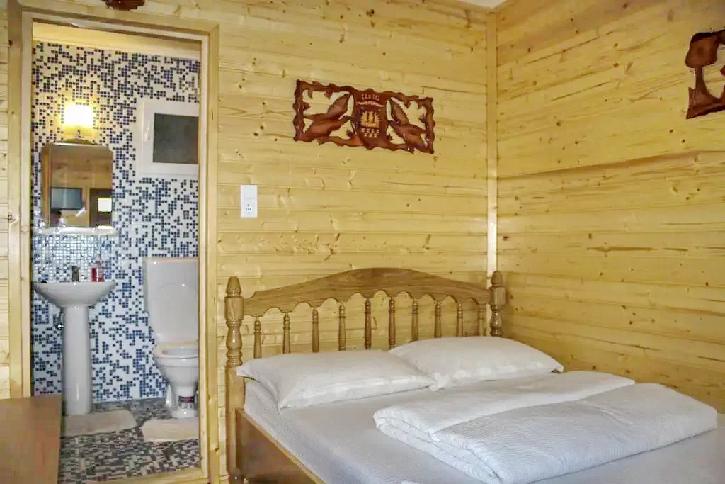 - 1 cabana de 2 persoane – pat dublu + baie interioară proprie