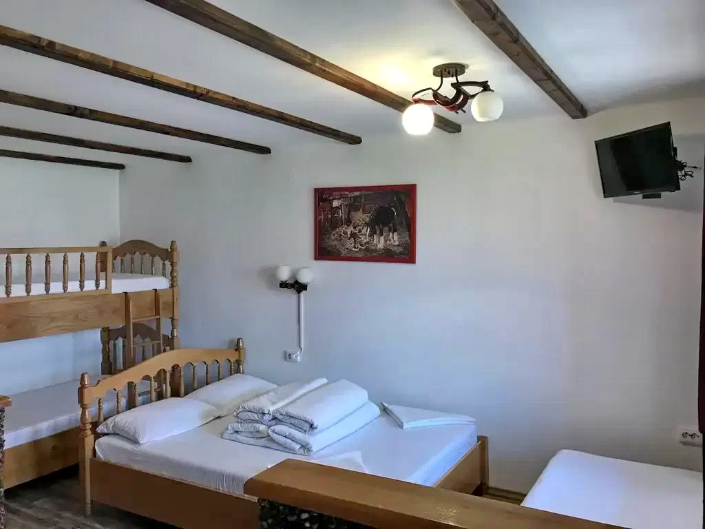 - În casele la cheie (in cabane) pot fi cazate 18 persoane. În colaborare cu pensiunea vecină poate caza 38 de persoane. Opțional poate oferi 3 paturi suplimentare.