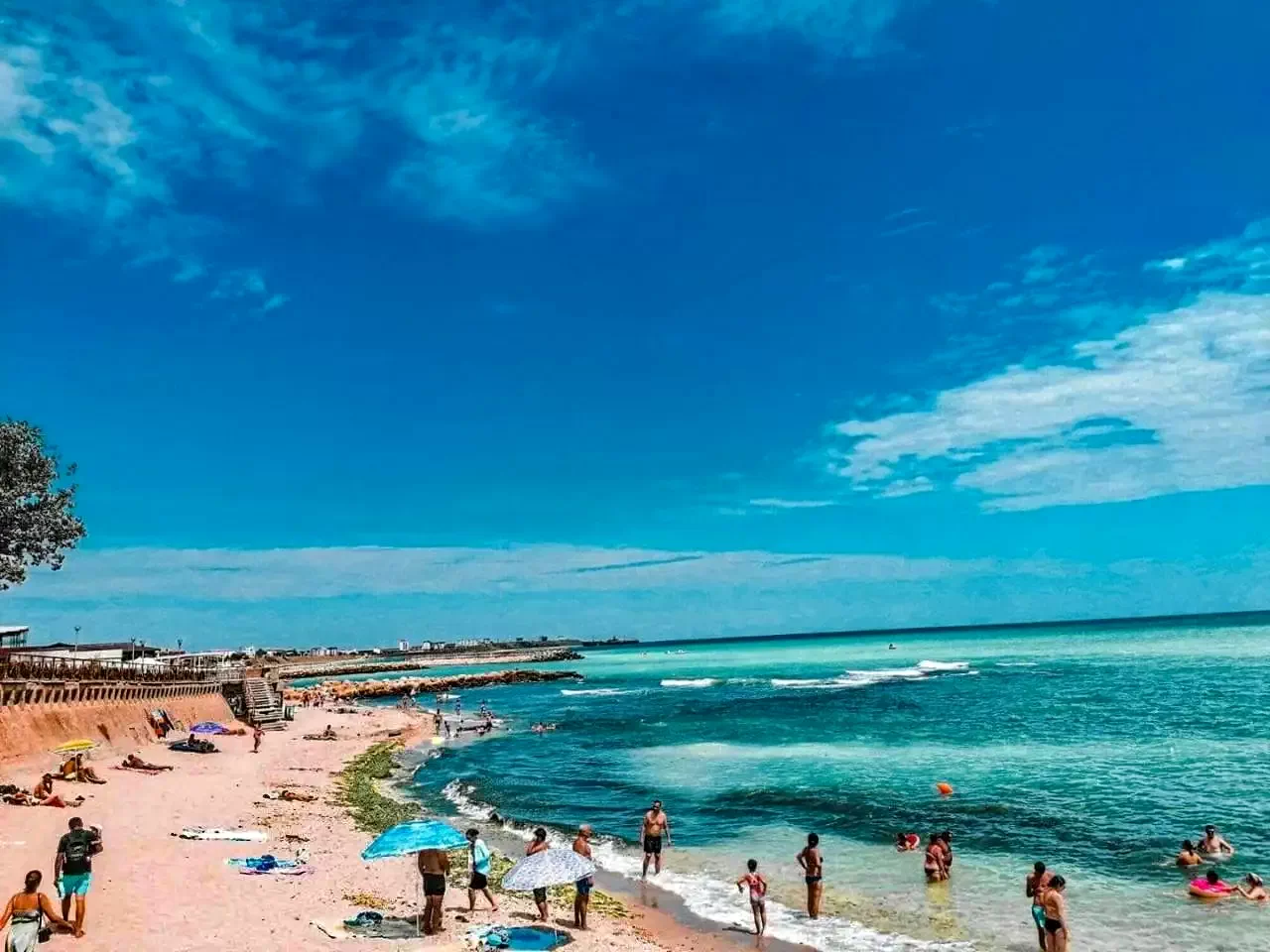 In zona Obeliscului, plaja este mai lata, însa foarte aglomerata pe timpul verii.