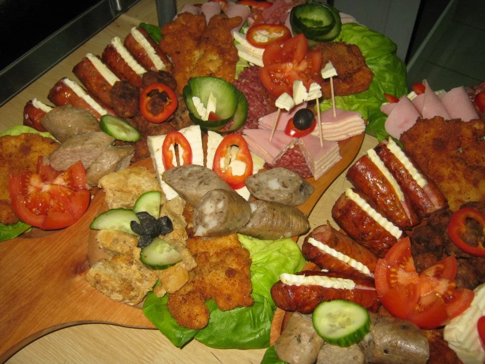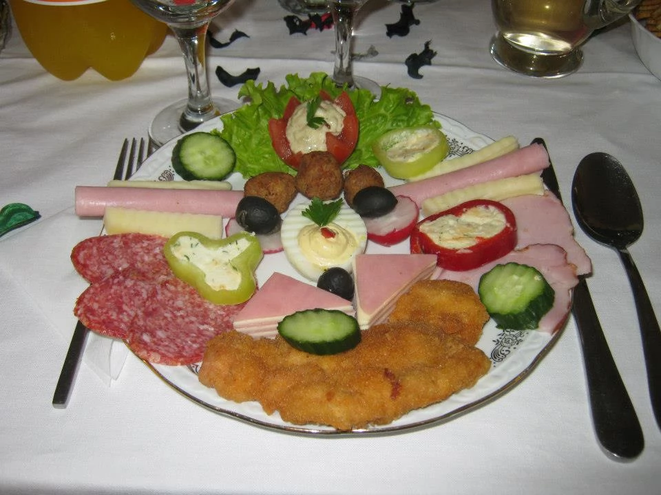 - aperitiv, fel principal, masă de la miezul nopții, băuturi, fructe, prăjituri.