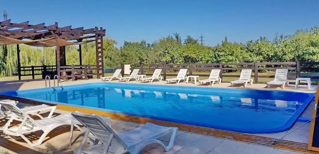 Pensiunea dispune de piscina exterioara 6m/13m, sezlonguri, umbrele cu terasa deschisa care o deserveste si ofera un sejur all inclusive de neuitat in Delta Dunarii.