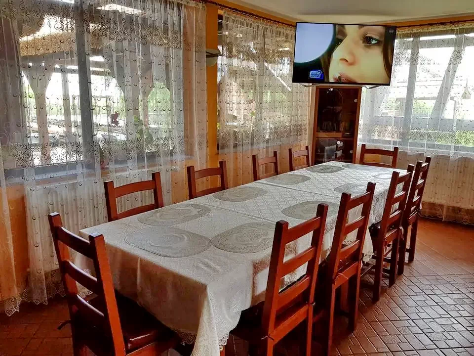 Pensiunea dispune de sala de mese, living, bar si terasa acopoerita.