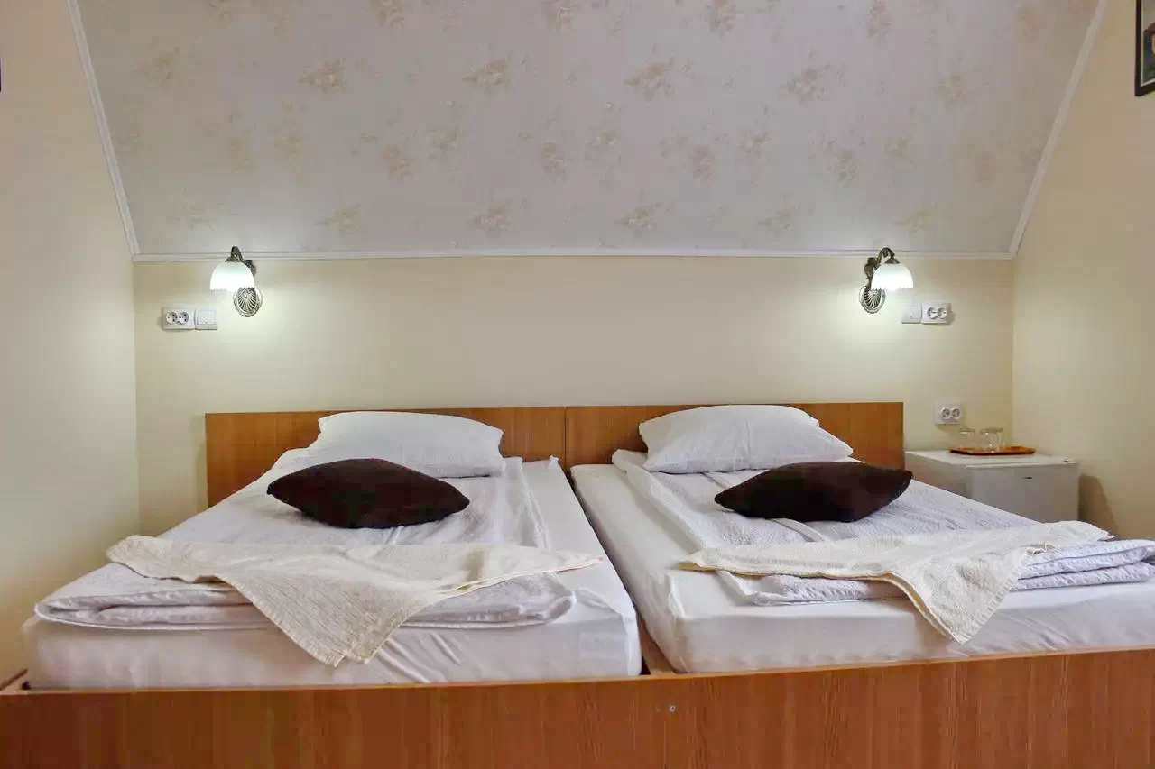 - 2 camere duble cu 2 paturi simple, baie proprie
