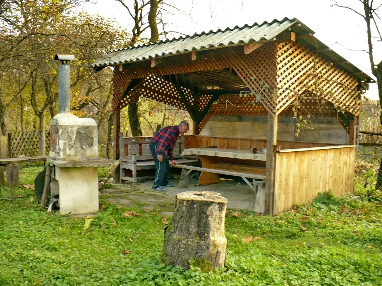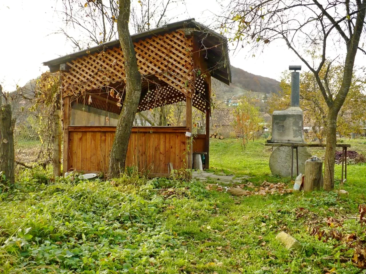 Foișorul din grădină și sunetul liniștitor al pârâului creează un cadru perfect pentru odihnă și reconectare cu natura.