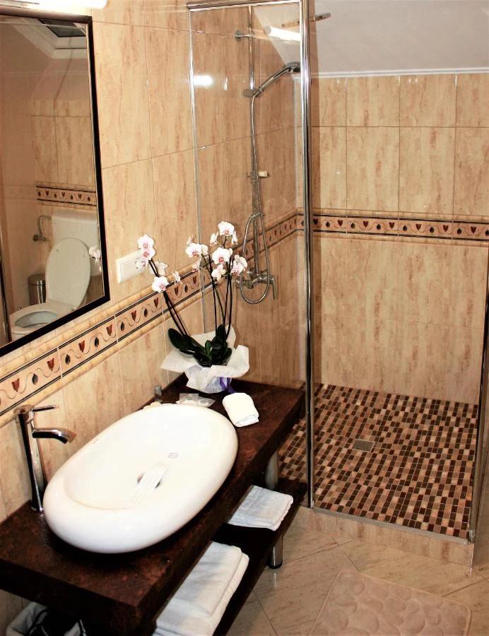 - Băi moderne cu cabină de duș și articole de toaletă gratuite