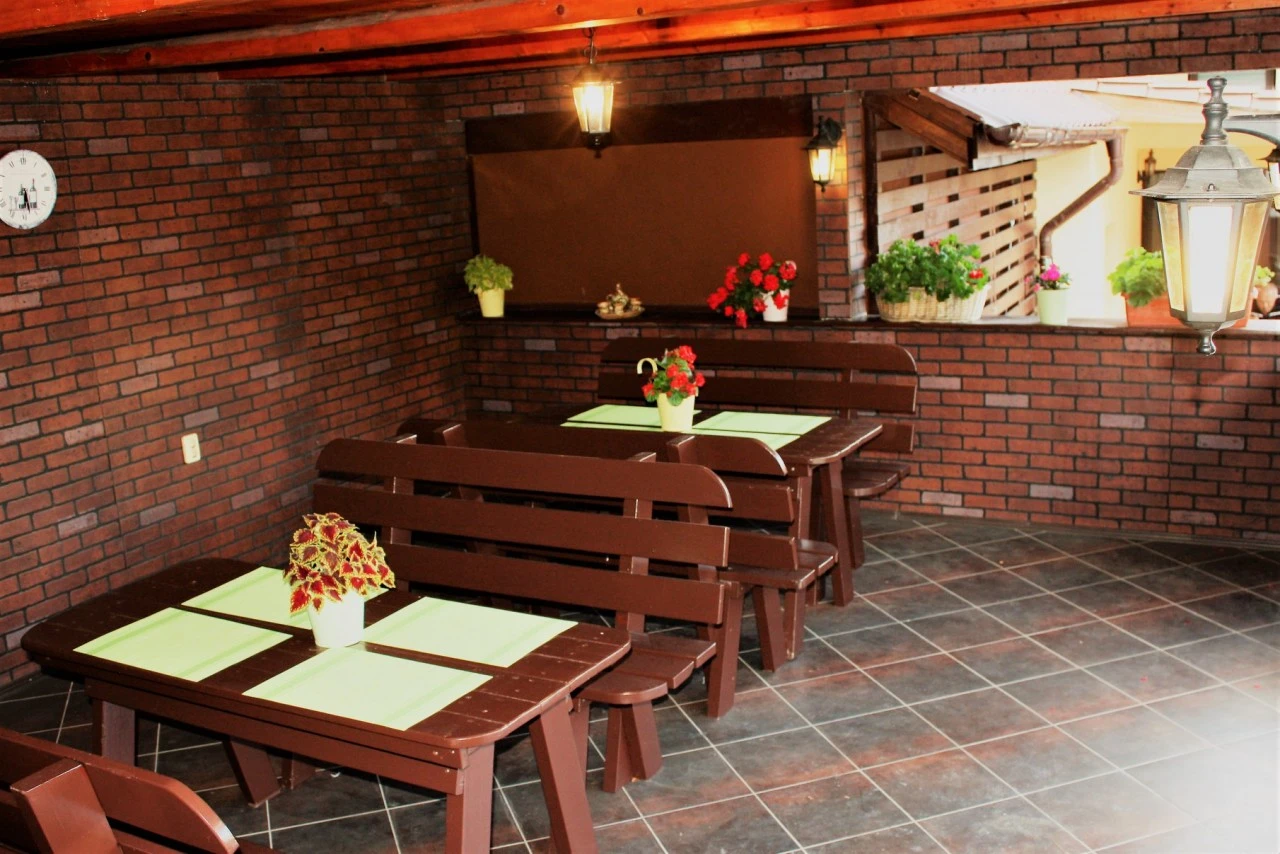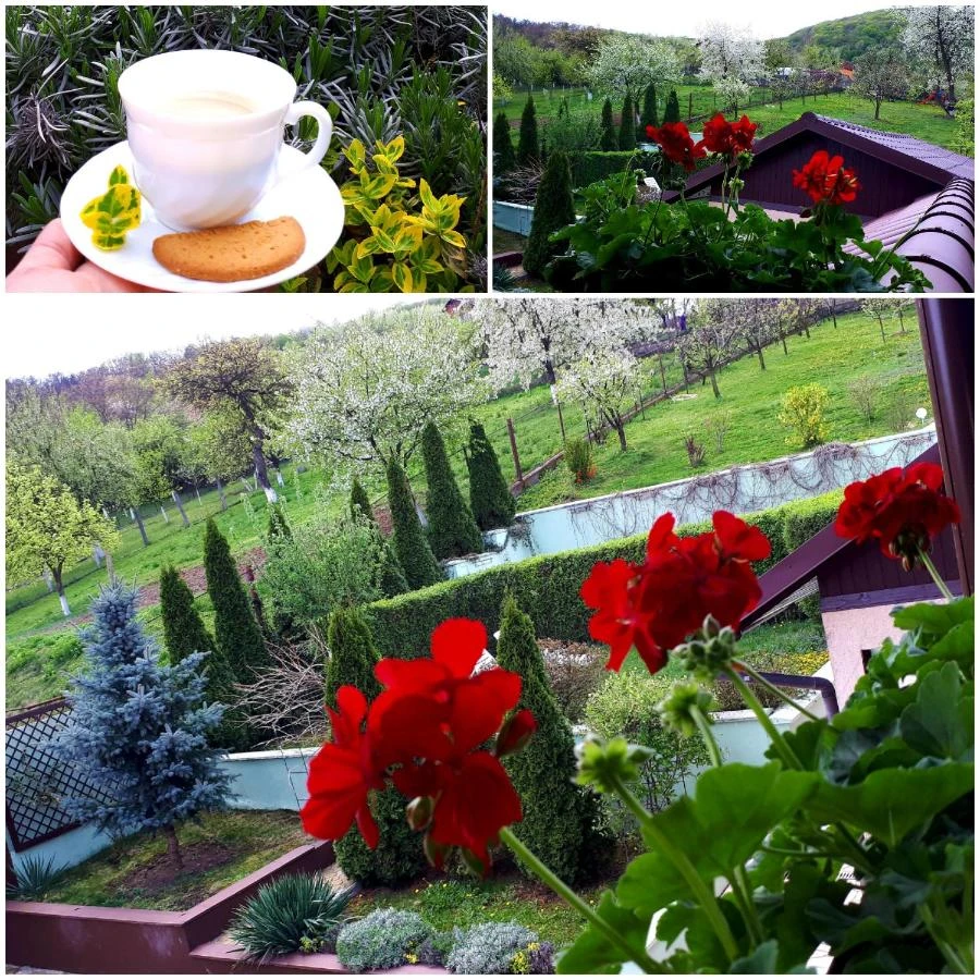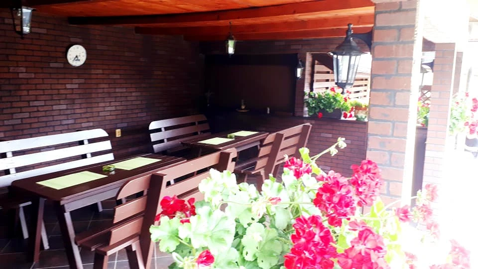 - Oaspeții pensiunii se pot relaxa în grădina îngrijită, unde se găsesc plante ornamentale, pomi fructiferi, un balansoar, bănci și o terasă acoperită (filigoră).