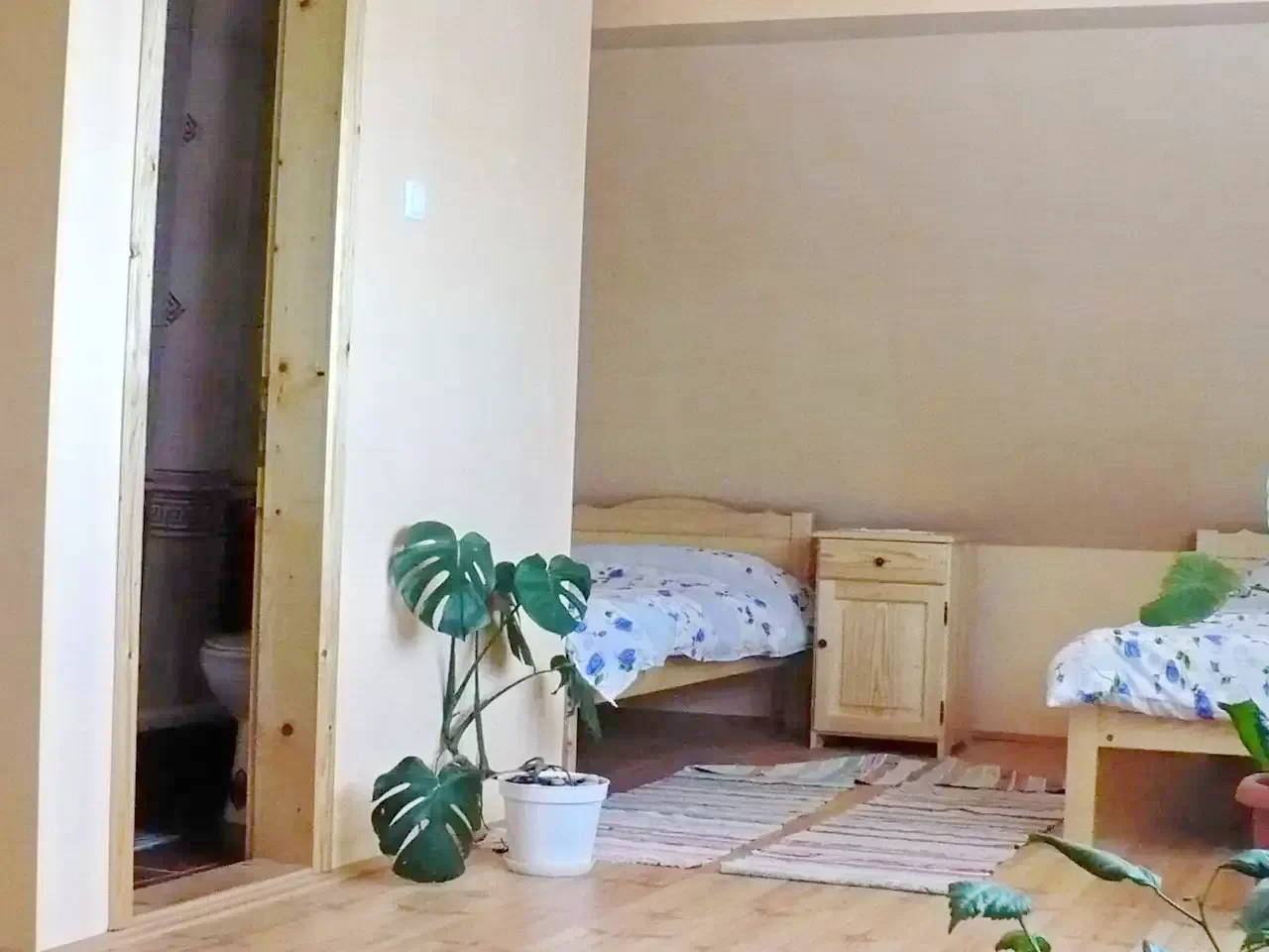 - 1. camera: 1 pat simplu + 1 matrimoniala/baie comuna (coridor)