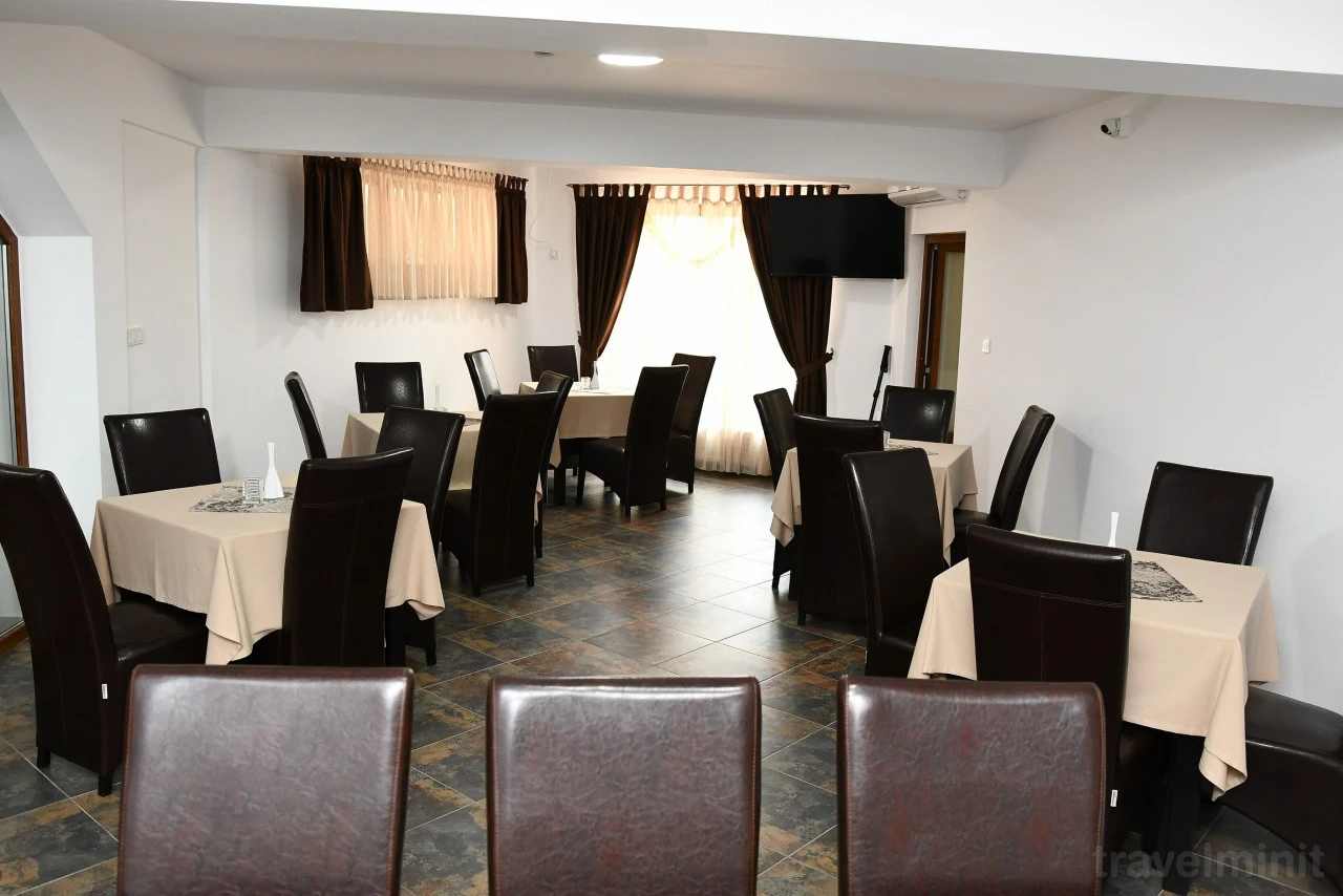 - Pensiunea dispune de două săli de mese, fiecare cu o capacitate de 26 de locuri, precum și o terasă spațioasă acoperită, oferind un cadru natural pentru servirea meselor.