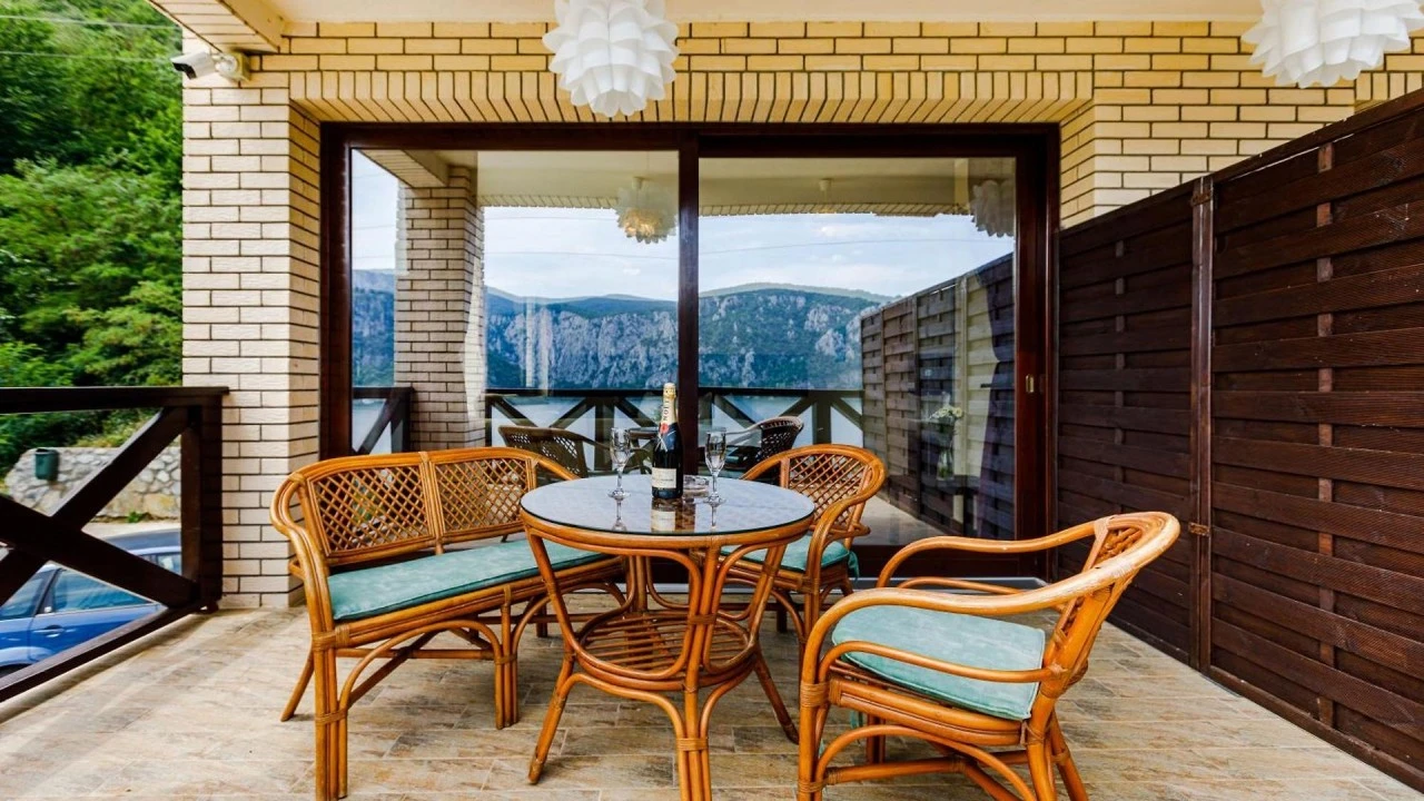 - Dispune de 12 camere și 3 apartamente, toate având terase cu vedere la Dunăre, astfel încât oaspeții se pot bucura de peisajul uimitor în orice moment al zilei.