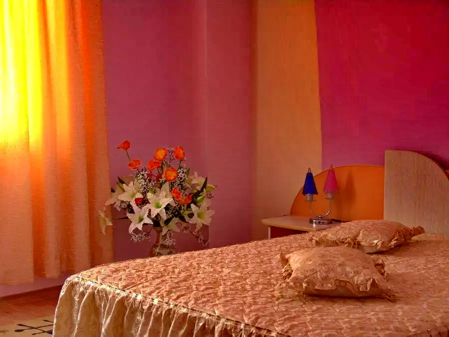 - Este o construcție noua, din 2006, are 7 camere duble (toate au pat matrimonial, iar unele mai au încă un pat de o persoana). Camerele au un confort deosebit, sunt spațioase, mobilate modern, cu baie proprie cu cabina de dus, au aer condiționat, Tv, cablu, frigider.