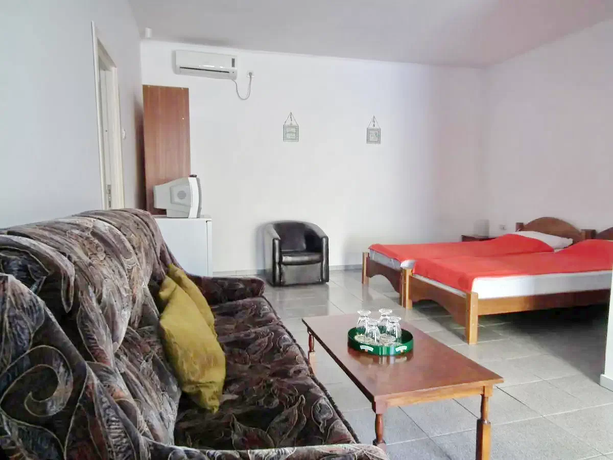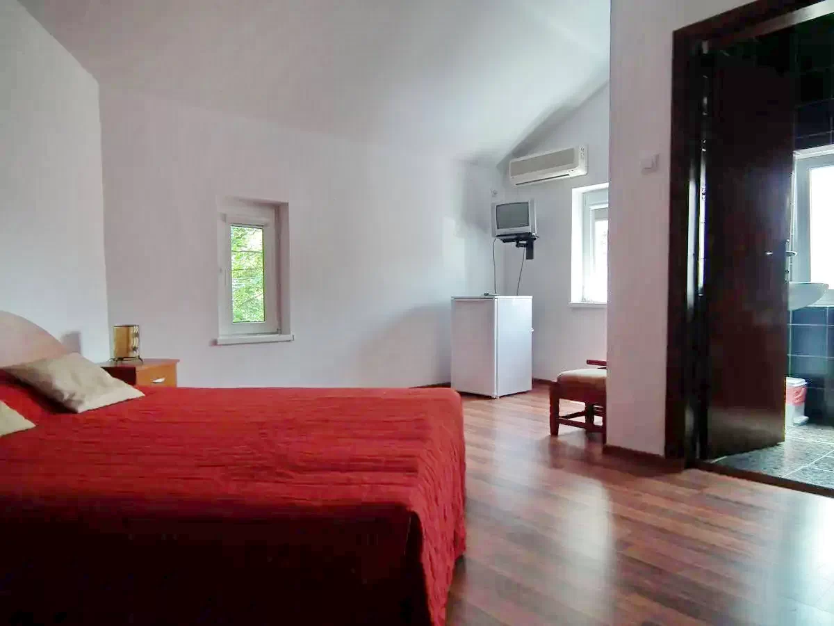 Cameră dubla cu 1 pat dublu mare 160/200 cm / 2 persoane / 15 mp.. Are aer condiționat, TV prin cablu, frigider și baie privată cu duș și articole de toaletă gratuite.