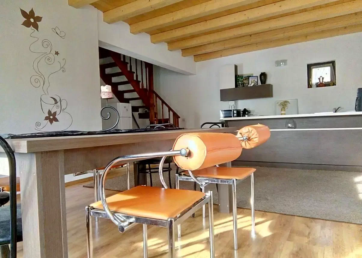 - Dispune de bucatarie dotata, o sala de mese - living si o terasa acoperita.
