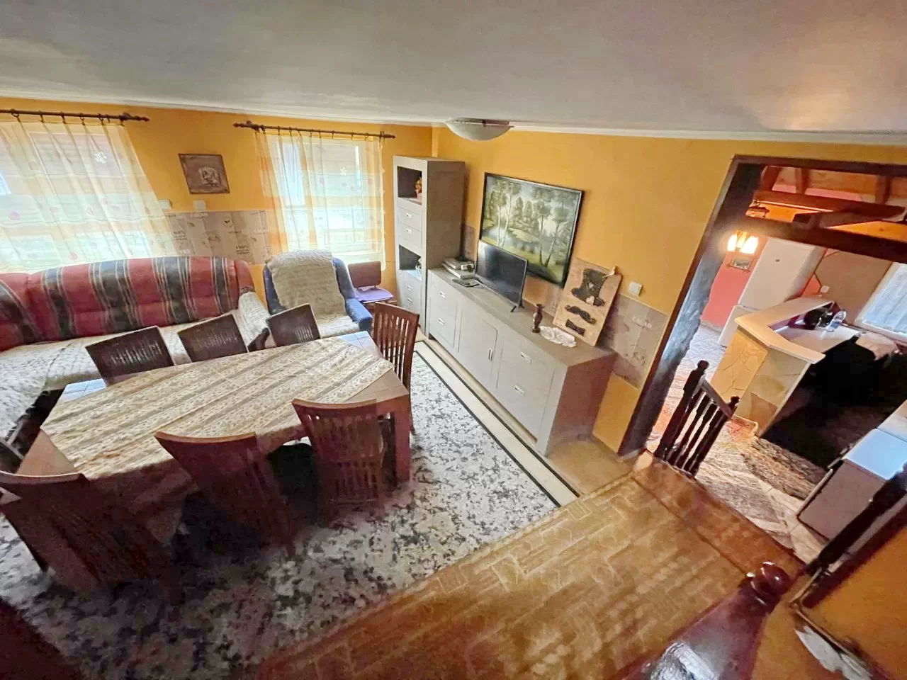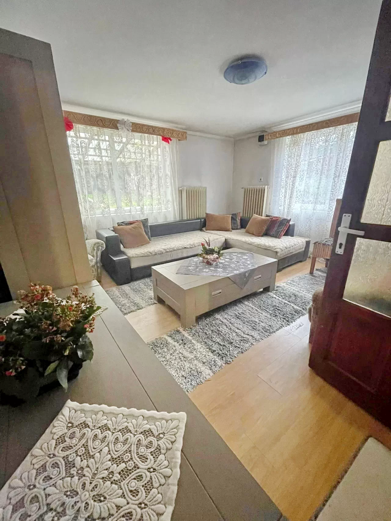 - La parter se află un living spațios, cu o capacitate de până la 13 persoane, dotat cu o canapea extensibilă – loc perfect pentru relaxare sau întâlniri cu prietenii.