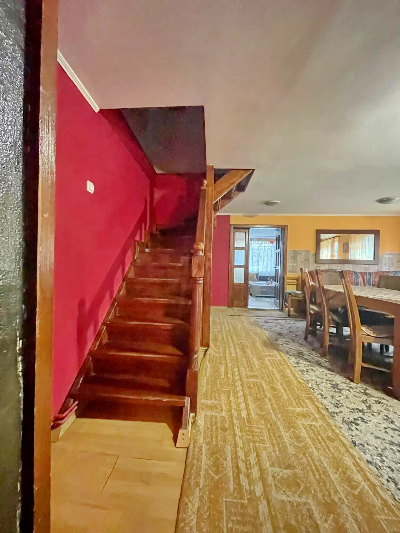- La etaj sunt trei dormitoare amenajate cu grijă, ideale pentru familii sau grupuri de prieteni. Cele două băi – una cu cadă și alta cu duș – asigură confort maxim, iar încălzirea centrală pe bază de peleți garantează căldura chiar și în cele mai reci zile.