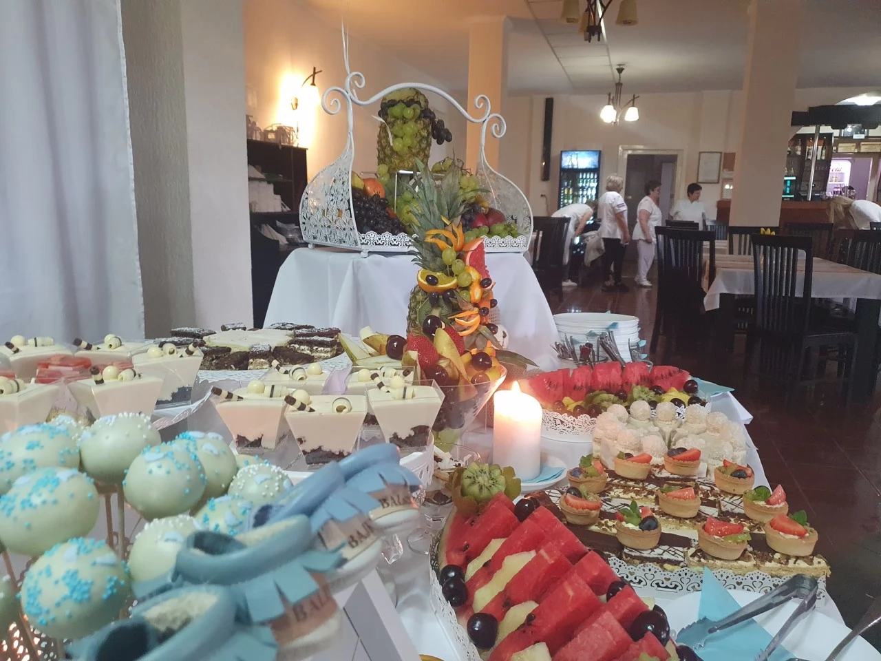 - Muzică live cu DJ, meniu cu bufet suedez, candy bar coltul băuturilor, foc de artificii.
