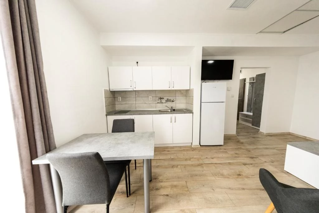- 3 apartamente delux cu terasa (un dormitor cu 1 pat matrimonial fiecare, living-zona bucătărie, baie cu dus)