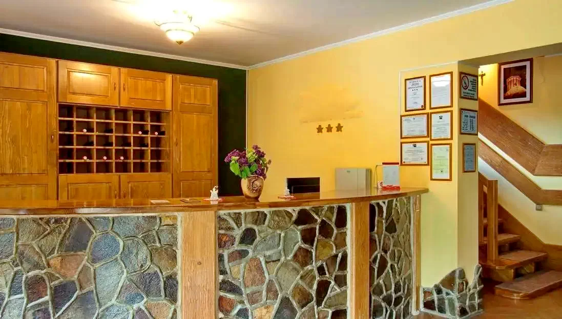 Pensiunea este un complex format din două clădiri separate situate într-o curte comună, oferind cazare confortabilă și de înaltă calitate pentru 44 de persoane. Camerele sunt spațioase, luminoase și mobilate modern, asigurând odihna deplină a fiecărui oaspete.