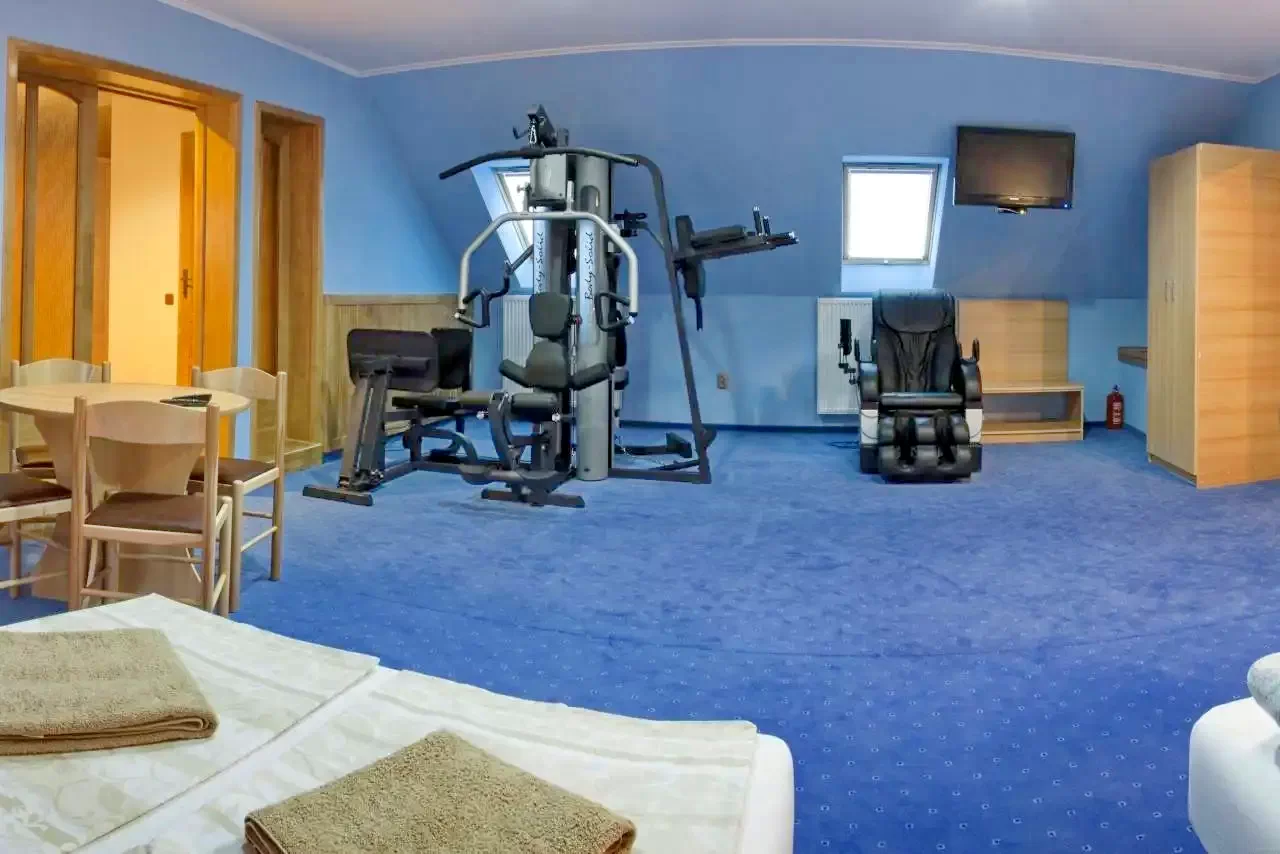 1 cameră familială cu 2 paturi matrimoniale + 1 pat suplimentar (4-5 persoane), TV și aparat fitness