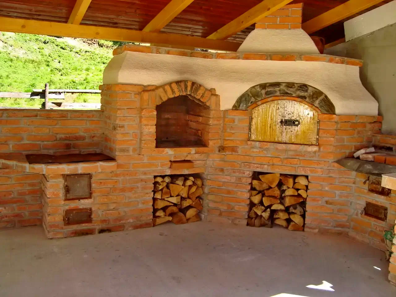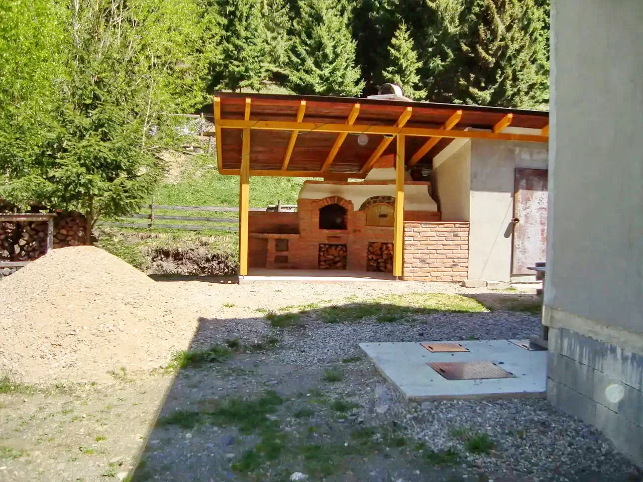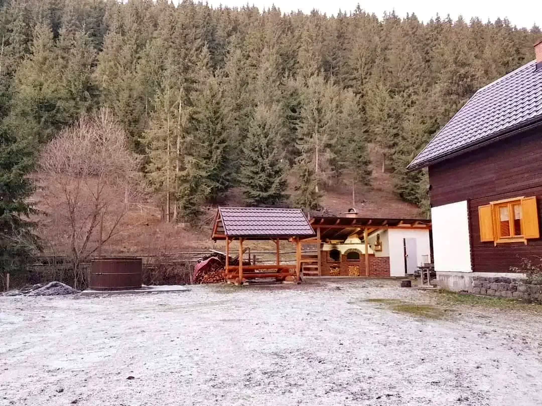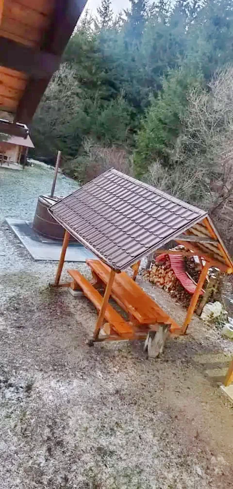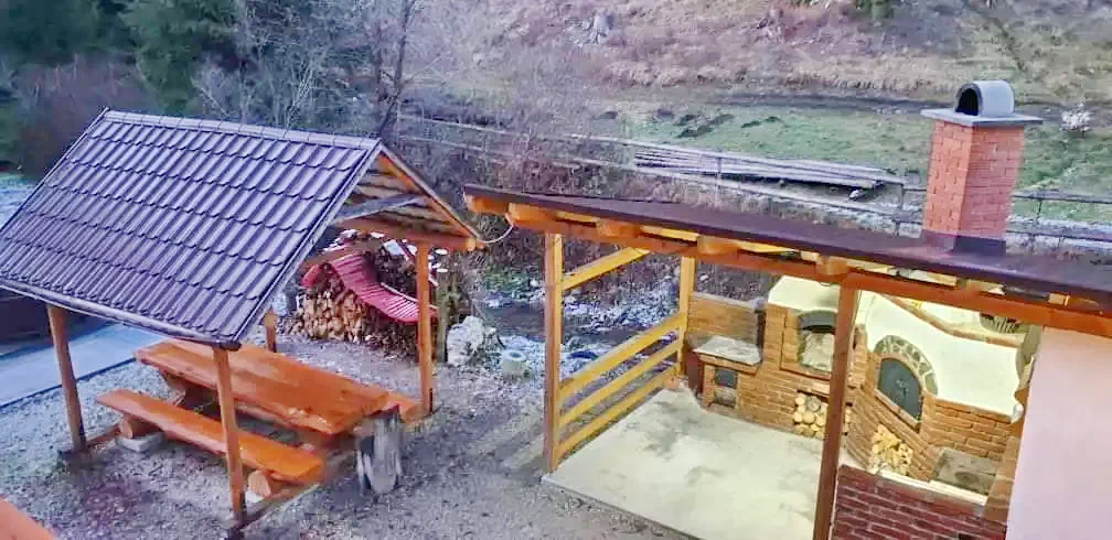 - Pe terenul de 14 ari cu păduri și malul pârâului, cabana are un foișor, cuptor, grătar și posibilitatea de a găti la ceaun.