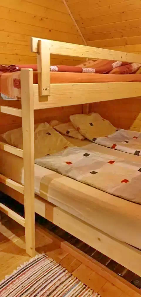 - 1 căsuță mică independentă din lemn în curte cu trei paturi