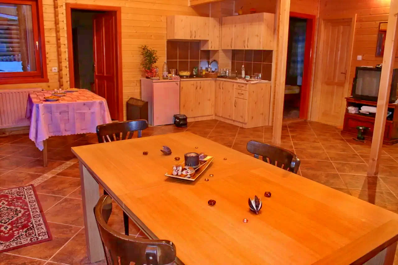 Cabana dispune de 6 camere duble și 5 băi, fiind echipată cu încălzire centrală. Nappali (living) cu toaletă de serviciu și bucătărie complet utilată.