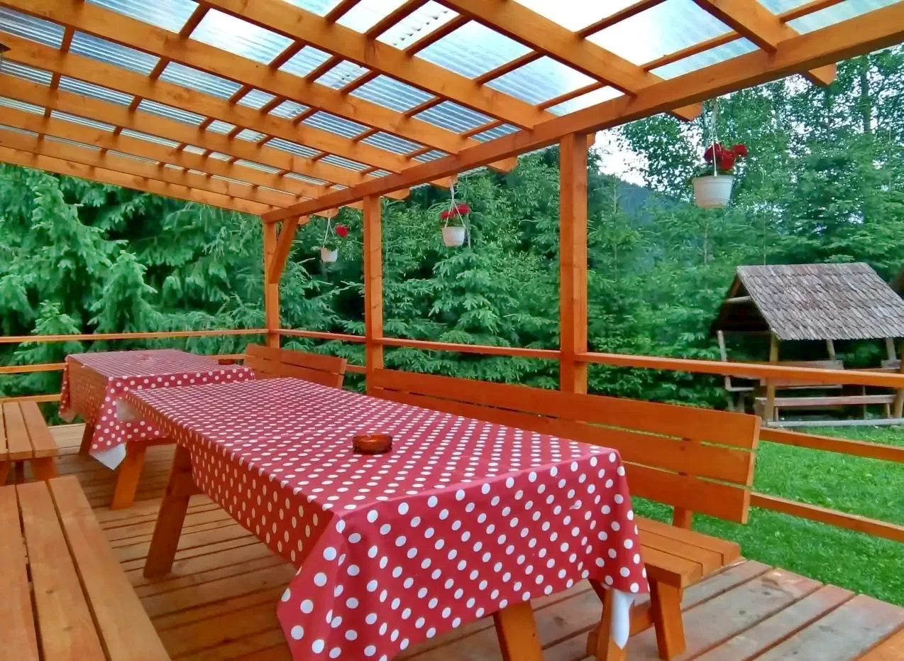 - Terasa, gradina cu vederea panoramică a munților din jur, ciubărul cu apa sărata, facilitățile de grătar si ceaun, foișor, leagăn, loc de joaca copii, precum si parcarea inchisa in curte toate stau la dispoziția oaspeților.