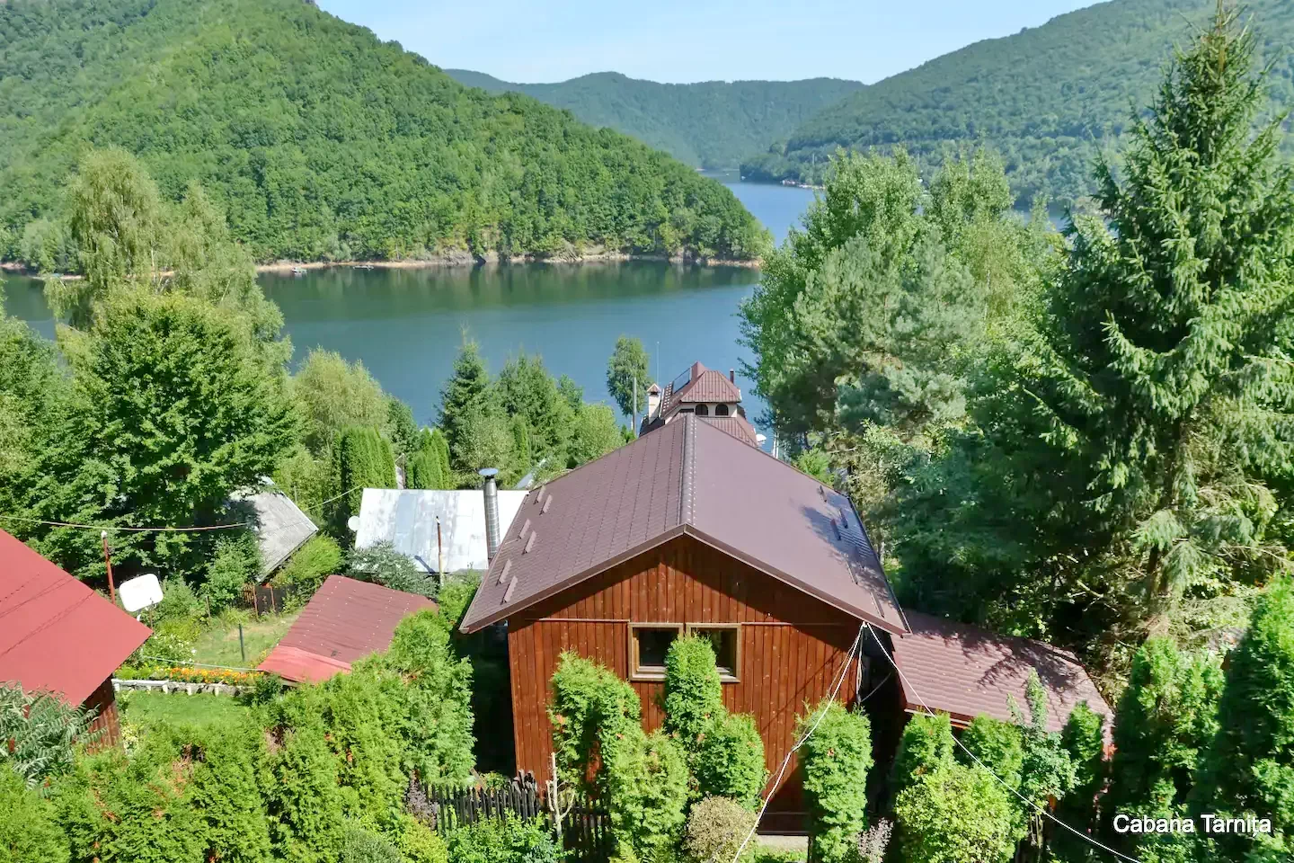- Grădina casei amenajată are vedere panoramică la lacul Tarnița și la munții din jur, ideal pentru programe in aer liber. Dispune de foișor, cuptor, facilitați de grătar, ceaun, loc de joacă pentru copii și parcare închisă.