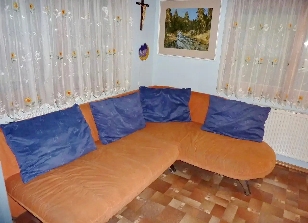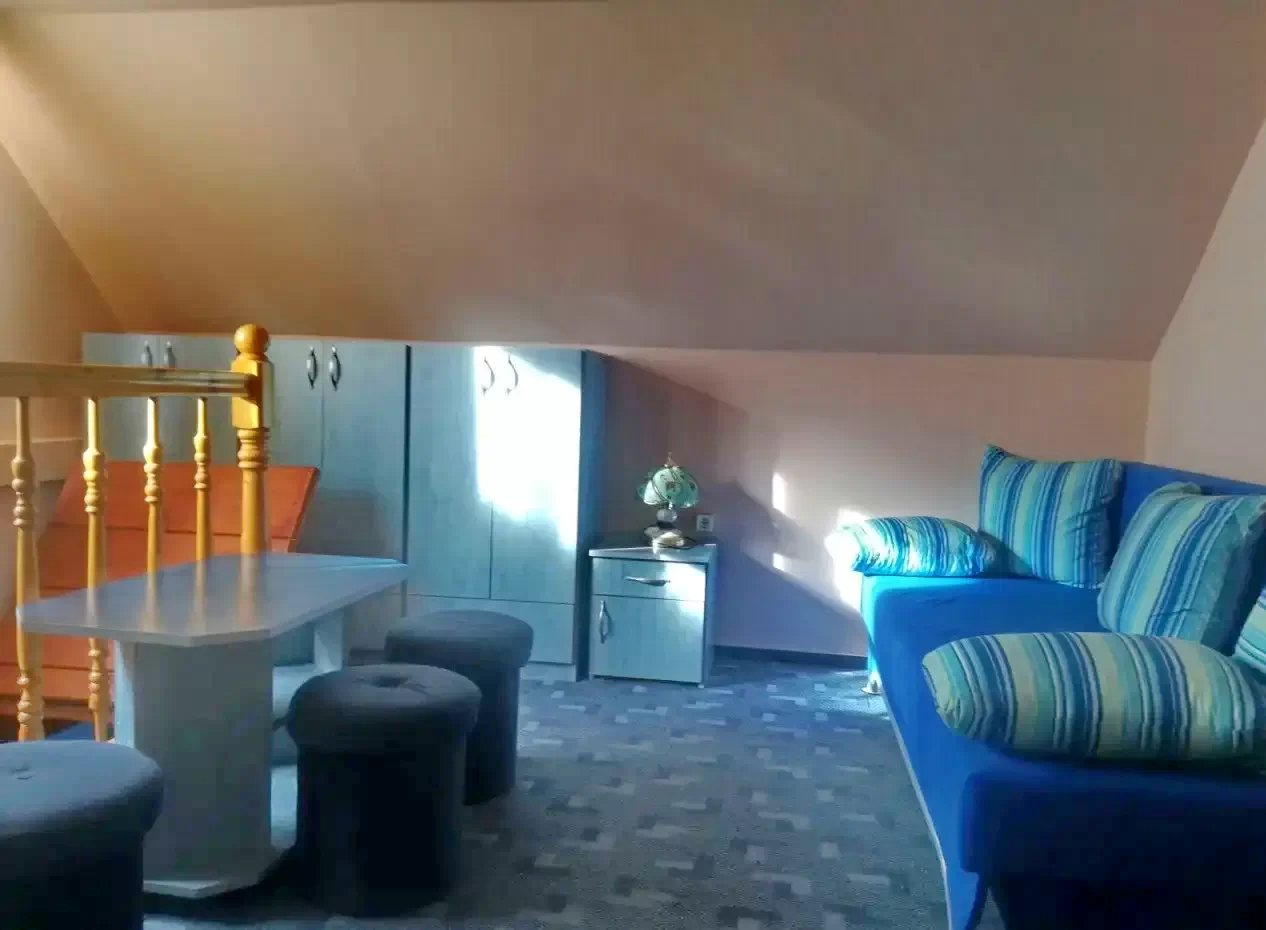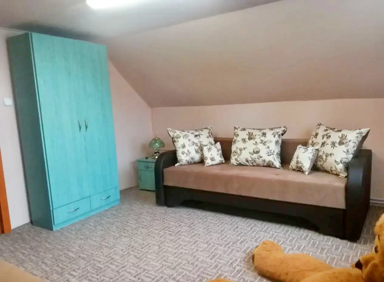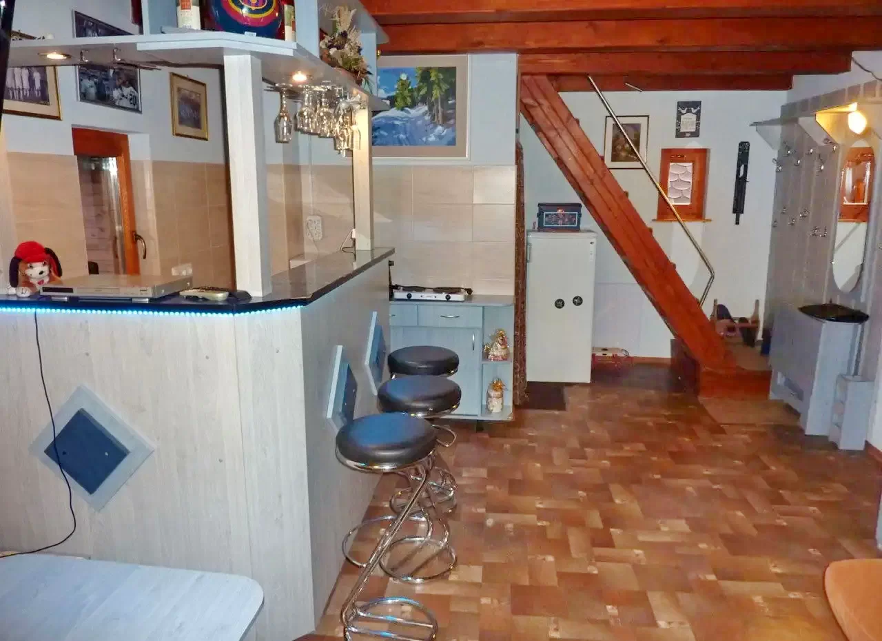 La parter se afla bucataria, baia si camera de zii - sufrageria. La etaj sunt doua camere. Prima camera este dotata cu un pat extensibil (pt. 2 pers.) si un pat simplu. In a doua camera se afla doua paturi extensibile duble. (Mentiune: In camera 2 se ajunge prin camera 1) In total: 5 (+2) persoane!