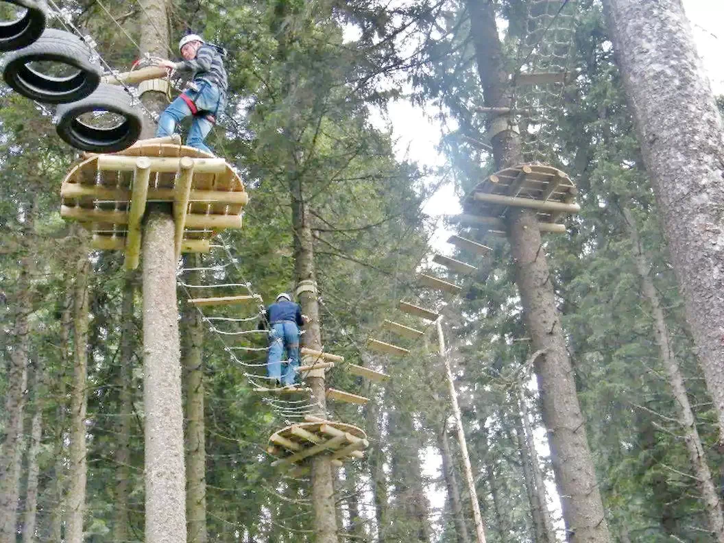 Parcul de Aventură Balu aşteaptă oaspeţii aventurieri construit într-o ambianţă de o frumuseţe rară pe o suprafaţă de 1.5 hectare cu 120 trasee cu frânghii şi 105 elemente de joc având diferite grade de dificultate.