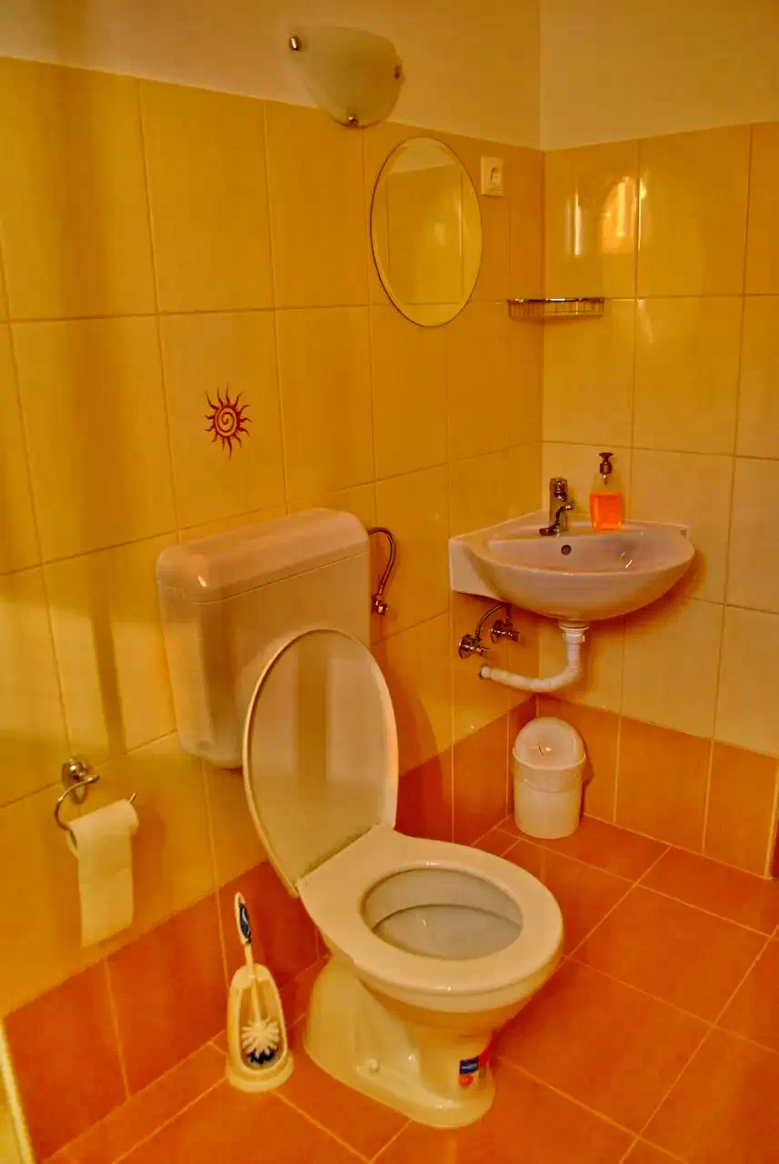 pe coridor se afla cate o baie pentru femei si barbati.