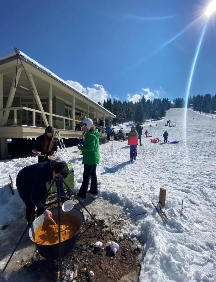 👉 De la ora 16:00 – program în aer liber: gulaș secuiesc cu slănină afumată, cârnați de casă, murături, pălincă, vin fiert și foc de tabără