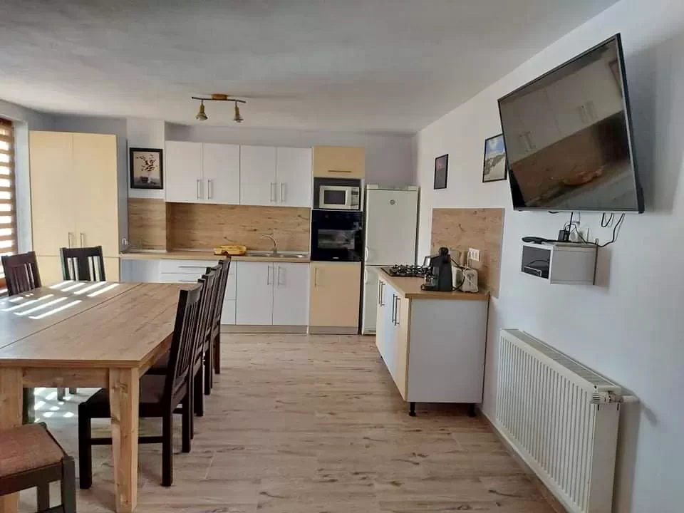 - Oaspeții noștri au la dispoziție o bucătărie complet utilată și un living spațios, unde se pot lua mesele sau petrece timpul împreună.