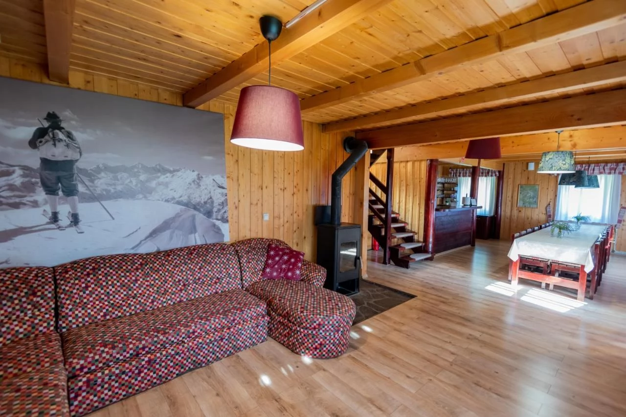 - Livingul-sufrageria spațioasă, dotată cu șemineu, creează o atmosferă și mai plăcută pentru oaspeții cazați.