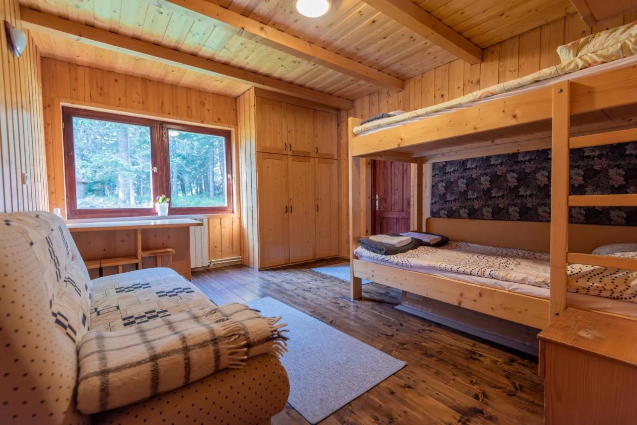 - Cabana se află pe o poiană panoramică la o altitudine de 1630 m, înconjurată de brazi prietenoși și dealuri cu linii blânde.