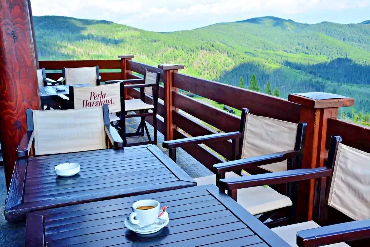 - Din camere se deschide o panoramă spectaculoasă către Carpații Meridionali și Munții Făgăraș.