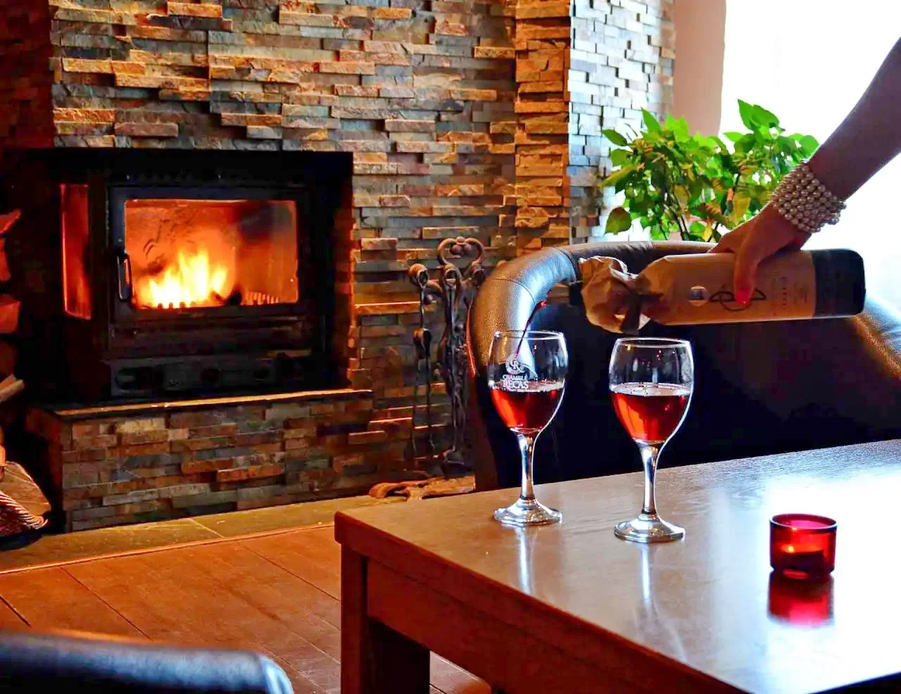 - La sfârșitul zilei, un pahar de vin savurat lângă focul din șemineu creează o atmosferă deosebită.