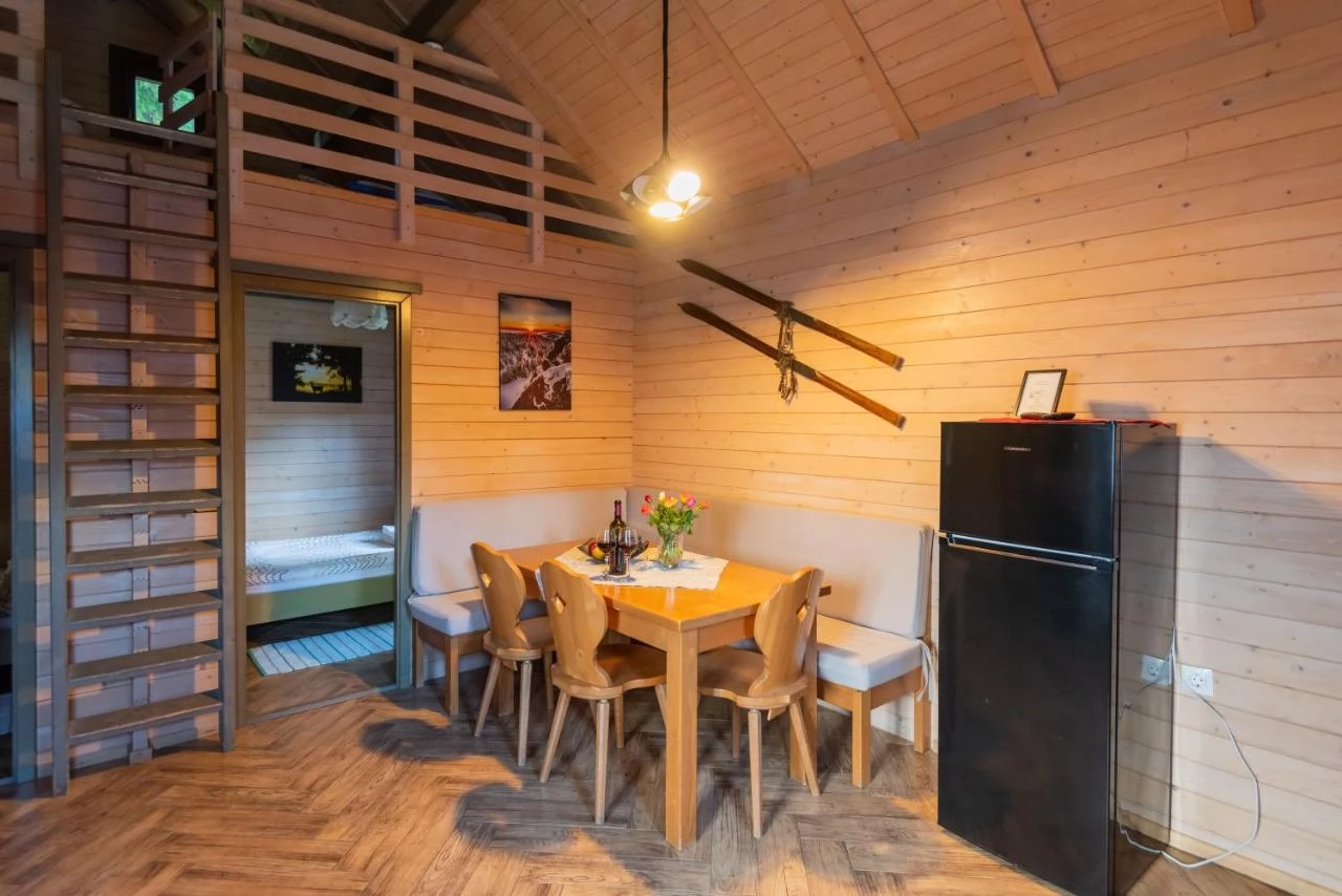 - Căsuța are o suprafață de 65 m² și oferă cazare confortabilă, fiind ideală pentru familii și grupuri de prieteni.