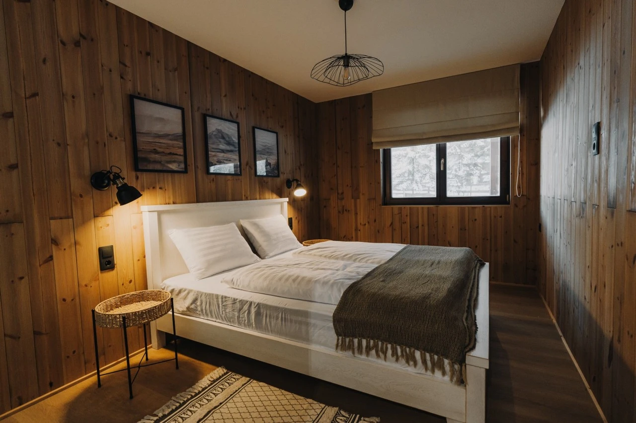 - Pensiunea oferă o capacitate totală de 36 de locuri: patru apartamente de 4 persoane și patru de 5 persoane, ideale pentru familii, grupuri de prieteni sau team-building-uri.