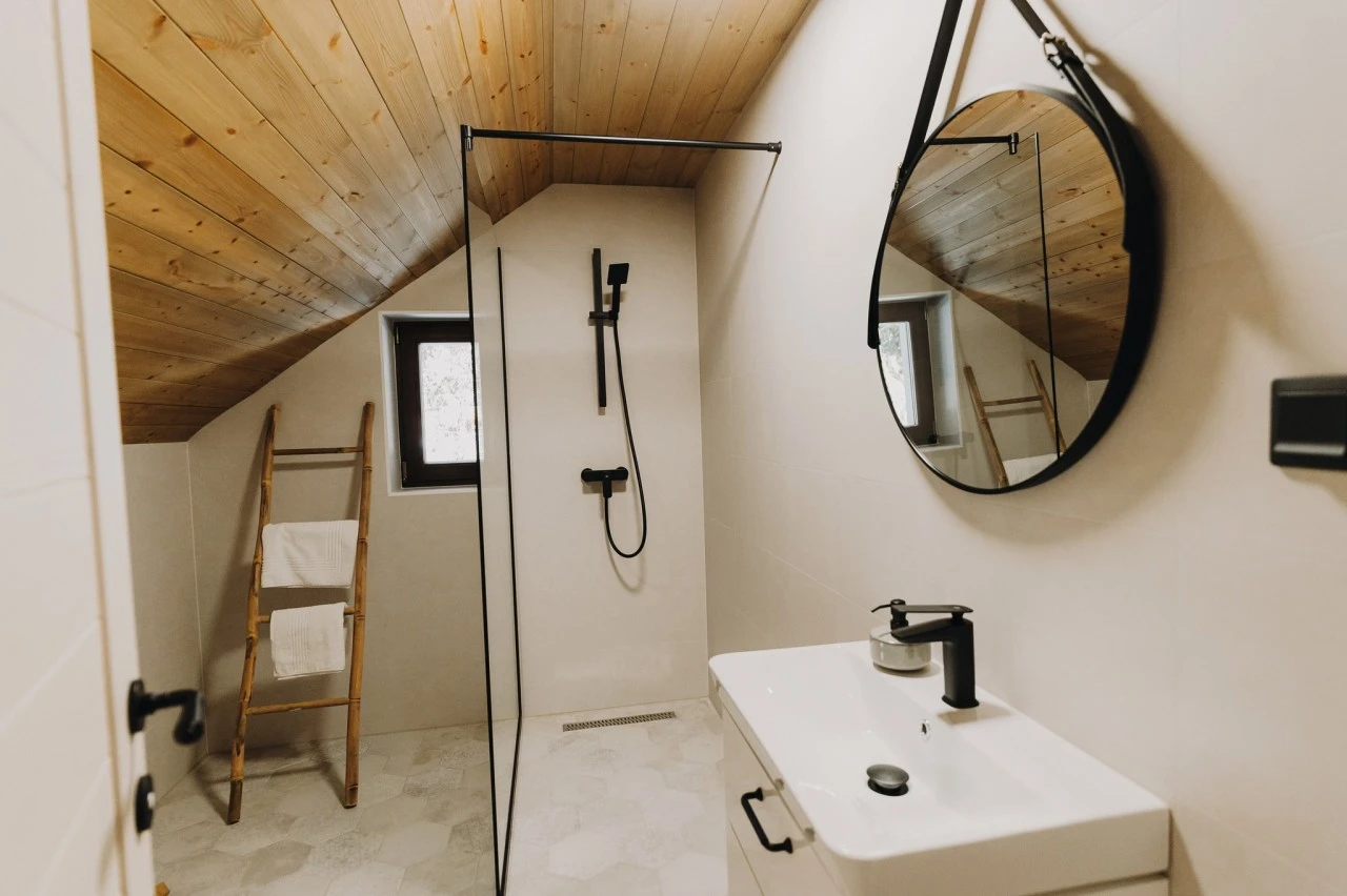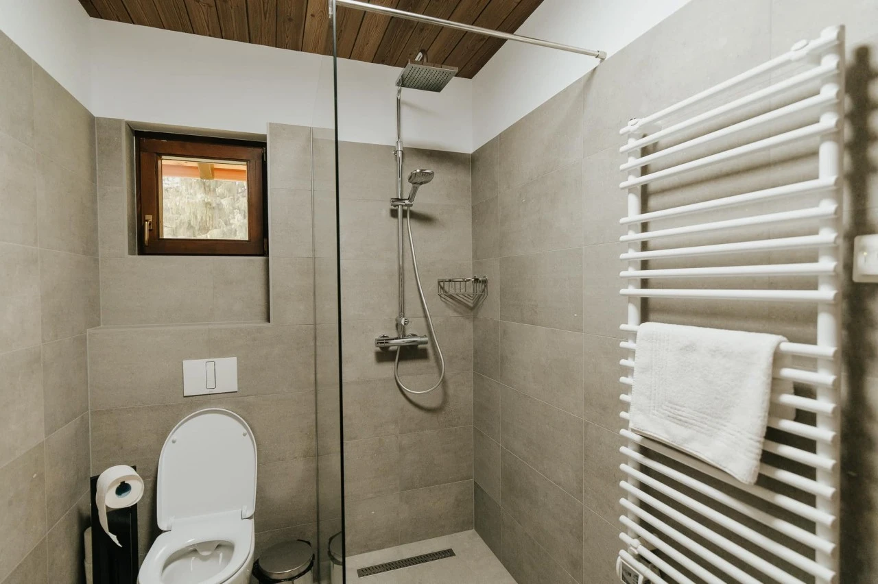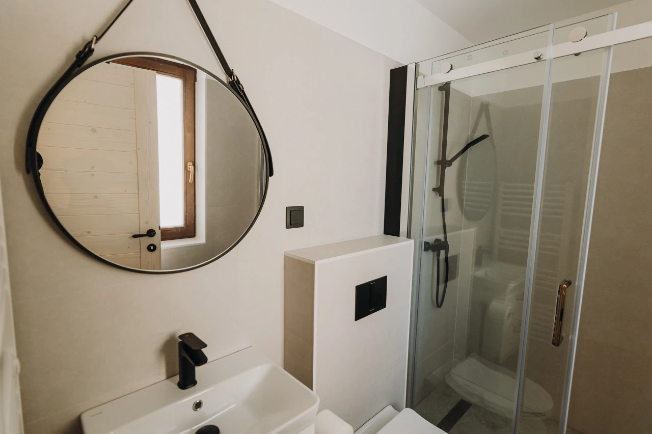 Băi renovate modern în apartamente (duș, WC); în vilă șase băi cu cadă/duș, uscător de păr, prosoape, toaletă suplimentară pentru oaspeți.