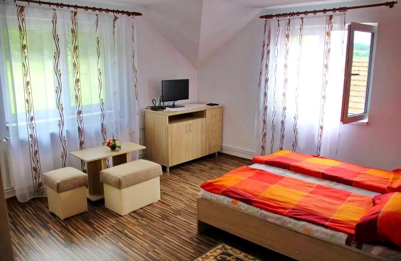 - Camerele sunt spatioase, dispun de mobilier nou, iar atmosfera relaxanta din interior va va da posibilitatea sa va reincarcati sufletul cu energie pozitiva, sa va reintoarceti acasa linistiti, cu sufletul plin de pace si de speranta. spatioasa.