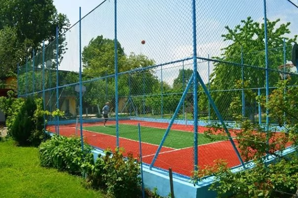 - Terenul multifuncțional de tenis/voley/baschet/tenis cu piciorul împrejmuit cu împletitura înalta de 6 m si luminat de frații soarelui pe timp de noapte, te îmbie la fel si fel de jocuri... toate stropite cu concursuri si pariuri dintre cele mai năzdravane!