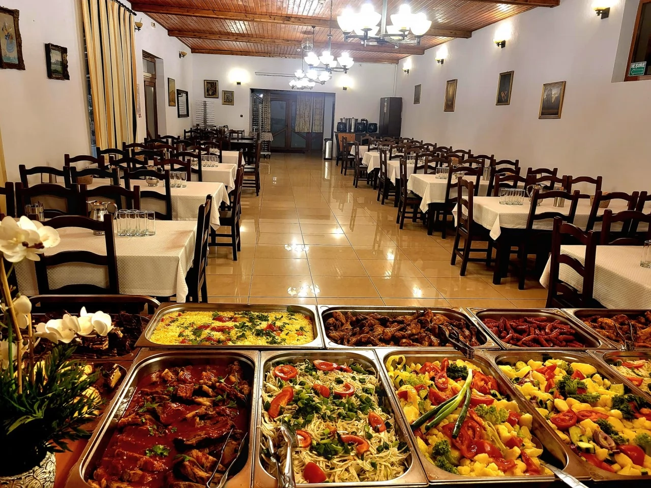 - Oferă mic dejun (bufet suedez), meniu bufet suedez (cina sau prânz), in restaurantul cu sala de 80 locuri si terasa de 100 locuri, si meniu „a la carte” in Crama.